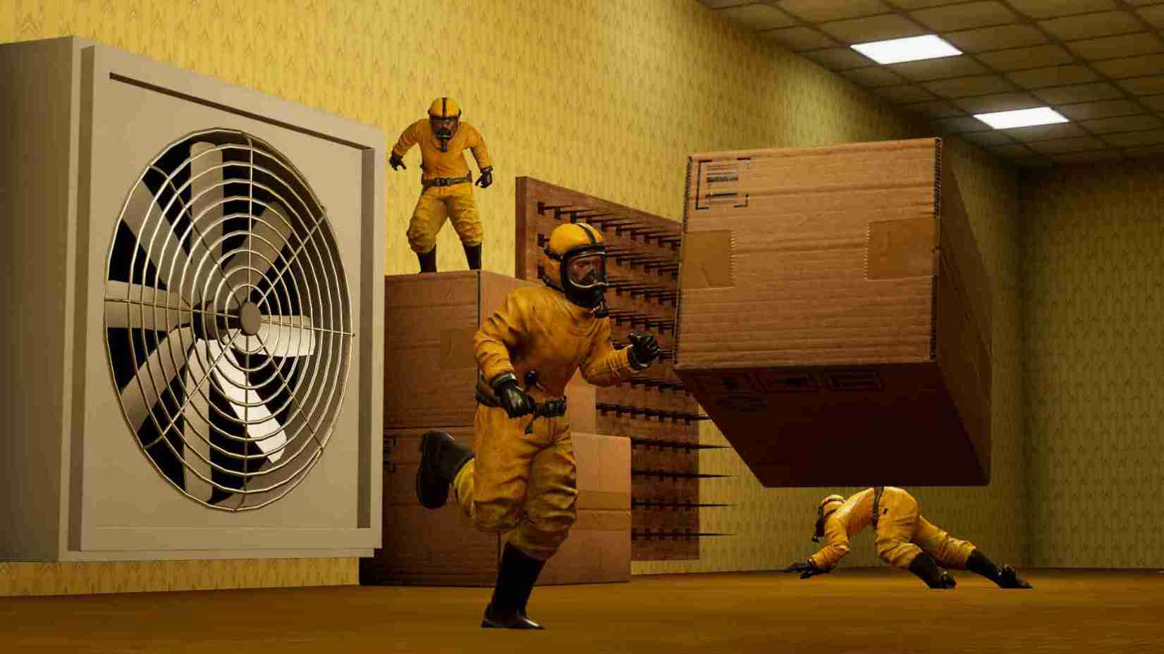 In Climb The Backrooms PC Game Download, you find yourself on a low floor of the Backrooms. You will move forward, using physics to interact with objects: for example, you might push crates, stack boxes, or climb ladders to reach ledges. You will also encounter puzzles: you may need to move objects in the correct order, activate switches, or unlock doors as you progress upward. Every level has a unique identity, mixing handcrafted sequences with chaotic procedural challenges to keep you guessing. In co‑op mode, you and your teammates can coordinate: one player might push a heavy object while another climbs or opens a passage. Challenges you can face, like I faced bowling balls, and once you complete them, you find your way to the next floor or room. On the second floor, your challenge is to pass through big blades that keep moving like a pendulum, and the floor below them also keeps moving, which makes it quite difficult, as I get killed many times by the blades before I succeed.