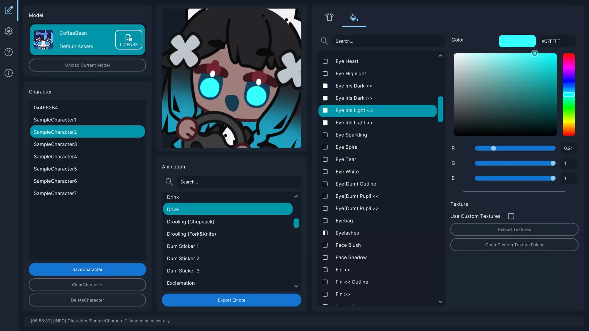 - Export character settings in a shareable format to exchange presets with others