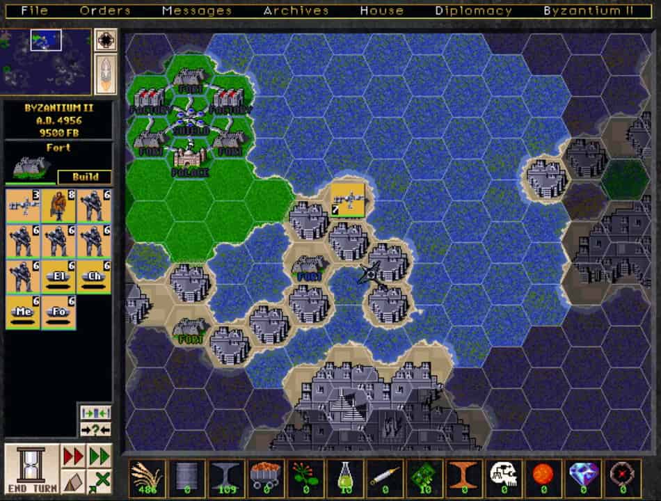 Emperor of the Fading Suns PC Download is played on a galactic map and specific planet maps. Planet maps use a hexa-grid system for movement. Individual units and buildings take up a single grid space. Several menus handle diplomacy, chat, and documentation. In the game, the player controls a feudal lord of a noble house amongst the ruins of a galactic empire. The player must battle other noble houses and rally enough support to be crowned Emperor of the galaxy. The player can start as one of five houses; each has its own advantages and disadvantages. During game setup, the player can customize their house, taking some negative traits such as insanity in exchange for more positive traits, like having all the player’s units start out better trained.